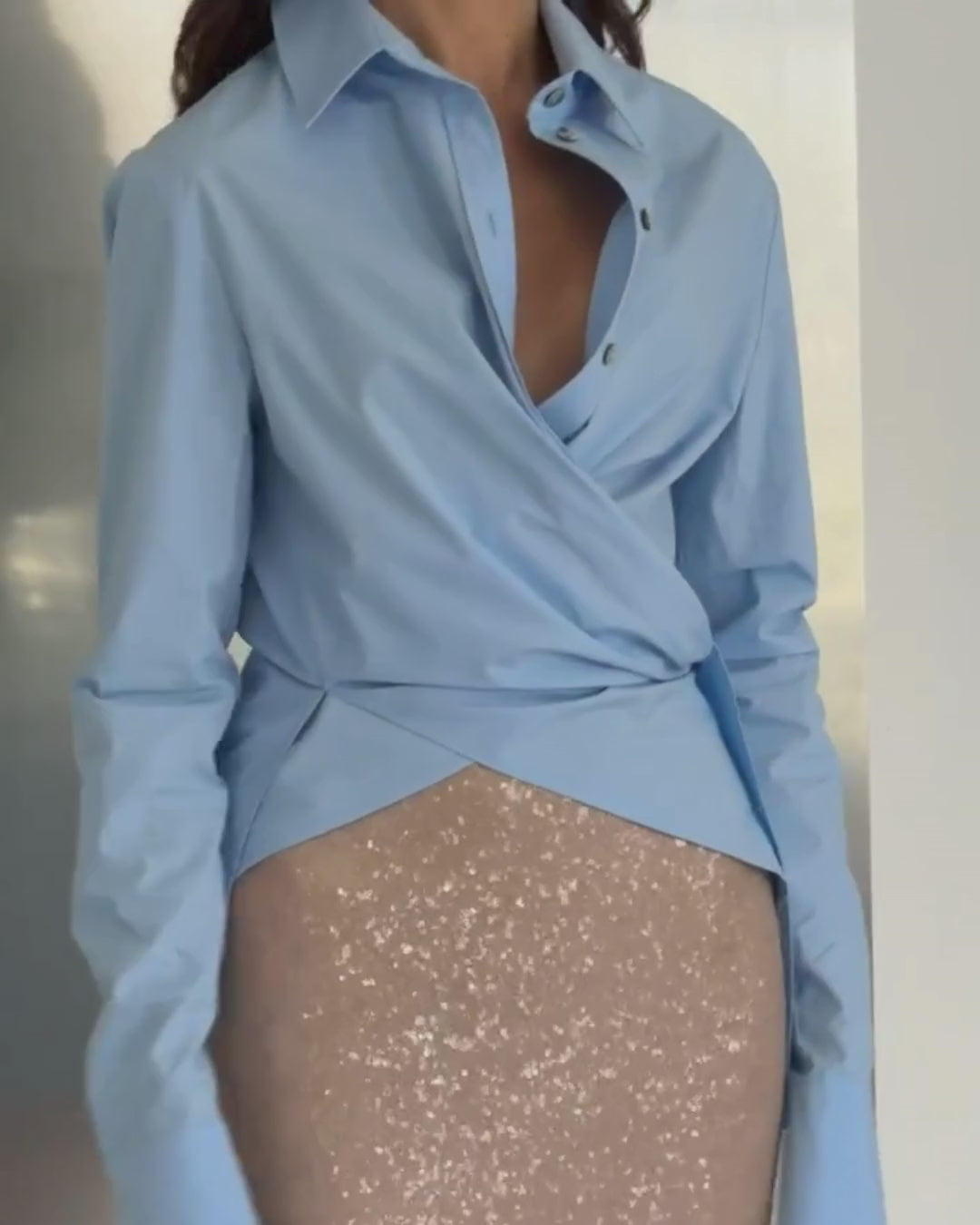 The crisp Blue cotton and dark mother-of-pearl buttons add a radiant, elegant finish